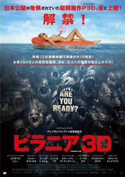 おっぱい祭りな映画ではありますが、3Dでちんこを見たの初めてだよあたい。(笑)ピラニアに食いちぎられたナニがね、3Dでプカ~浮いてるの。そいで、それをピラニアたんがパクッと食べちゃうんだけど、美味しくなかったんだろうね・・・・・不味そうにペッと吐き出すのよ!(大爆笑)