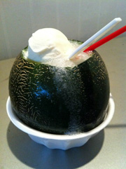 茨城名物「メロンまるごとクリームソーダ」!メロンがしゃくしゃくしてて、生メロンシャーベットという感じ!800円もしたけど美味かったまじでvv
