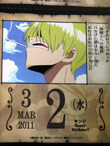 しかし、貰ったワンピカレンダー・・・・・日めくり以前に、切り取り線がっ!自分で365日分切れってか!(笑)もっとちゃんとした日めくりカレンダーが貰えると思ってたので、ちょっぴりガックリ。でも非売品だし、貰えて満足っすー!