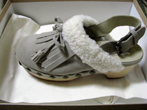 そんなわけでお買いもの話。以前ネットで予約した、モコモコ冬用サボが届いた~!(ルンルン)なのだけど、小さくてショック・・・・・!てゆうか、明らかにサイズ表記間違ってないか?ってレベル!サイズ2つ分くらい小さいんですけど。(泣)