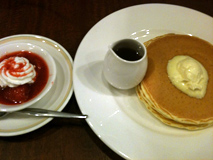昨日はみーたんとロイホの「お好きなだけパンケーキ」へ行ってきました!パンケーキ食べ放題(トッピングは+100円)、ドリンクバーもついて1000円未満てお得よねーvv今月いっぱい(平日のみ)だったから慌てて行ったんだけど、またやってくれればいいのにーーー!