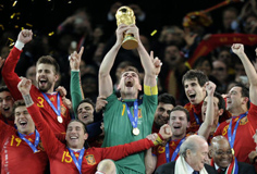 つか、今日もカシ様のセーブは神がかってたね!ロッベンと1対1になっても、全然負ける気しなかった!オレは信じてたよ!(実際負けなかったし)初戦のスイス戦での失点は若干ミスったかなと思ったけど、それ以降は堂々たる安定感。彼の存在がなかったら、スペ優勝はなかった気がするんだーvvて、あれ?カシージャスのことしか言ってない。(苦笑)今日はナバスも良かったですね!ナバスがアップになると目の色がキレイでうっとりしてしまうーvv