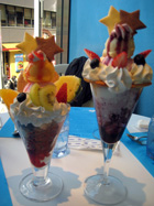 星がテーマのパフェテラス、ミルキーウェイで、メルヘンパフェを食べてお祝いをしてきました。サンジらしくて良いかなとvv13星座別のパフェが有名なので、勿論サンジのうお座を頼んだよ。ヨーグルトとベリーの甘酸っぱさがあの子らしかった~vv(悦)あ、カワイコちゃんが寂しがるといけないので、ゾロのさそり座も頼んでやった。(やった?)こちらはフルーツが盛りだくさんで、さすがワイルド!(笑)