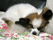 最後にウチのワンコ。実家にはパピヨンが2匹いますが、代表でハピ君を。やんちゃ坊主な上にカメラ嫌いなので、おねむな時しか写真撮れません。(笑)