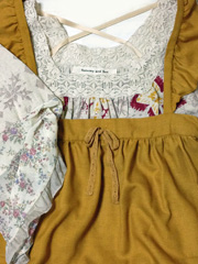 あと、今年はマスタード色に惹かれて、珍しくこんな色物を買ってしまったキャミワンピ。腰までおとして胸のところを絞ると、大人っぽいスカートにもなるのだー。ワンピとして着ると結構短いのだけど、年齢気にしないで着るよオレは!(気合い)中に可愛いブラウスを合わせちゃったりして。